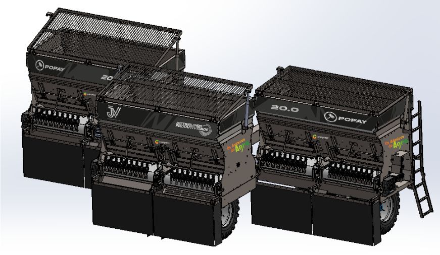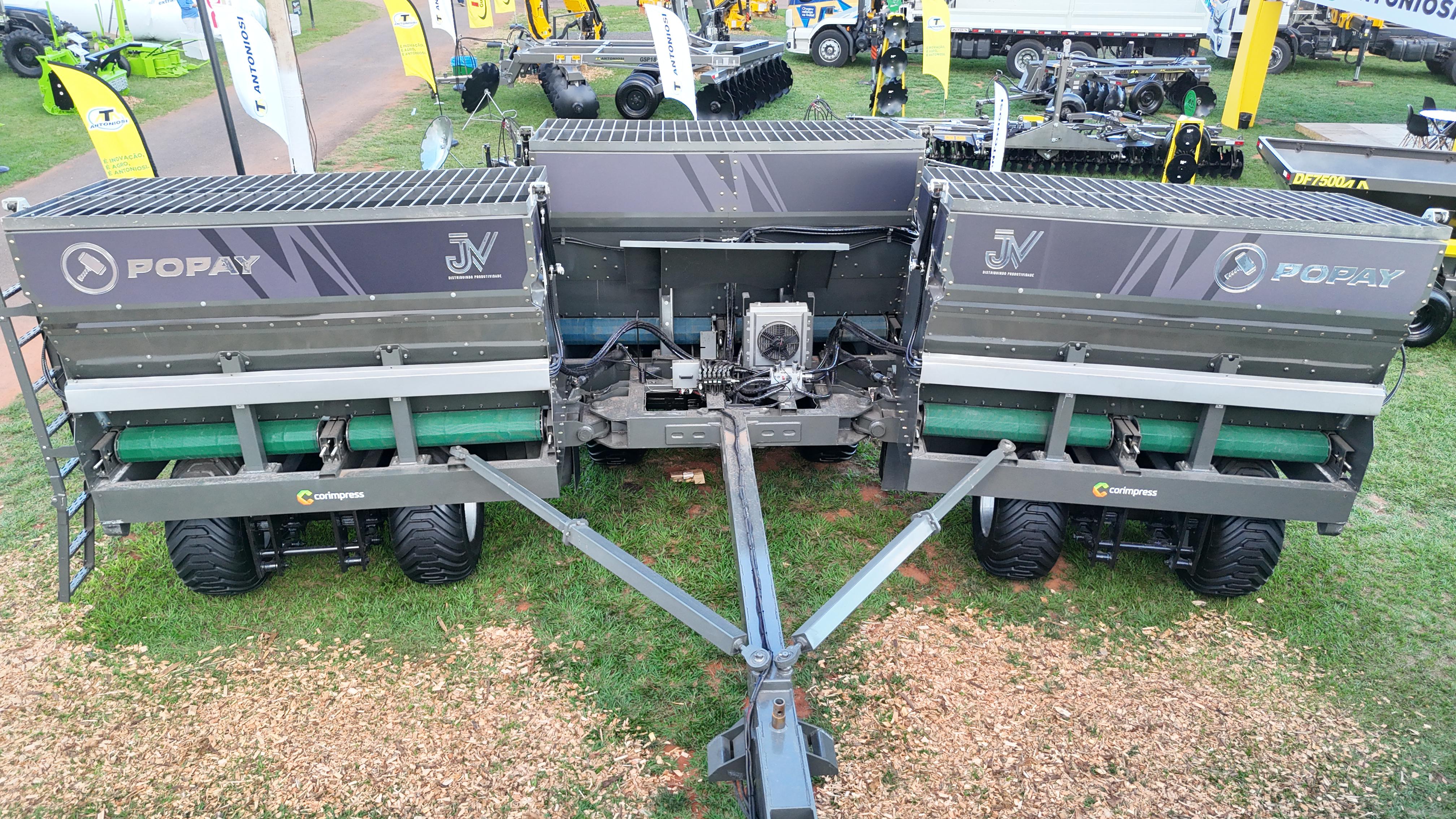 Distribuidor de fertilizantes de 14 m³, com acionamento hidráulico, taxa variável Hexagon e ISOBUS, pneus de alta flutuação e sistema robusto que garante eficiência, precisão e fácil operação.